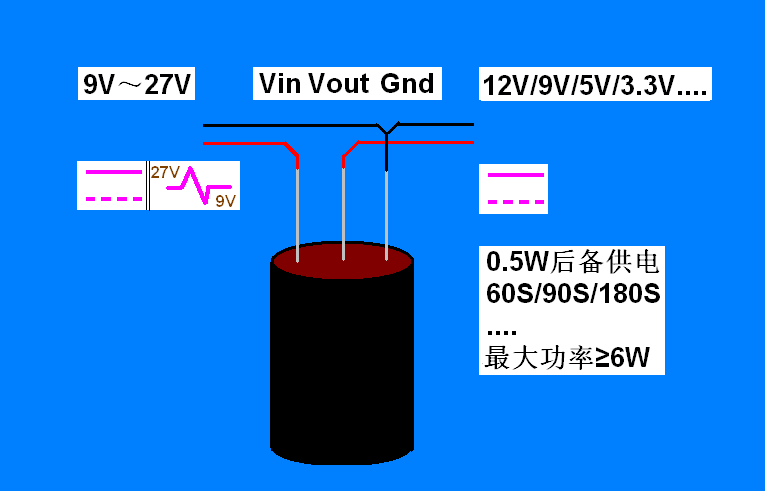●宽输入电压。可在9V~27V输入电压范围内可靠工作,稳定输出电压12V或3.3V/5V;